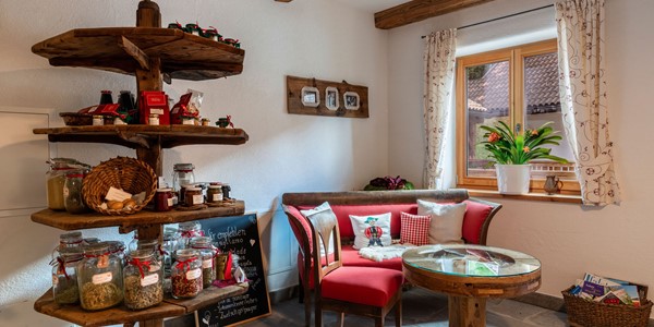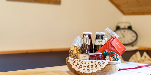 Esplorate i nostri prodotti del maso nell'angolo dei prodotti, nella casa ristrutturata nel 2016. Vi offriamo varie prelibatezze: